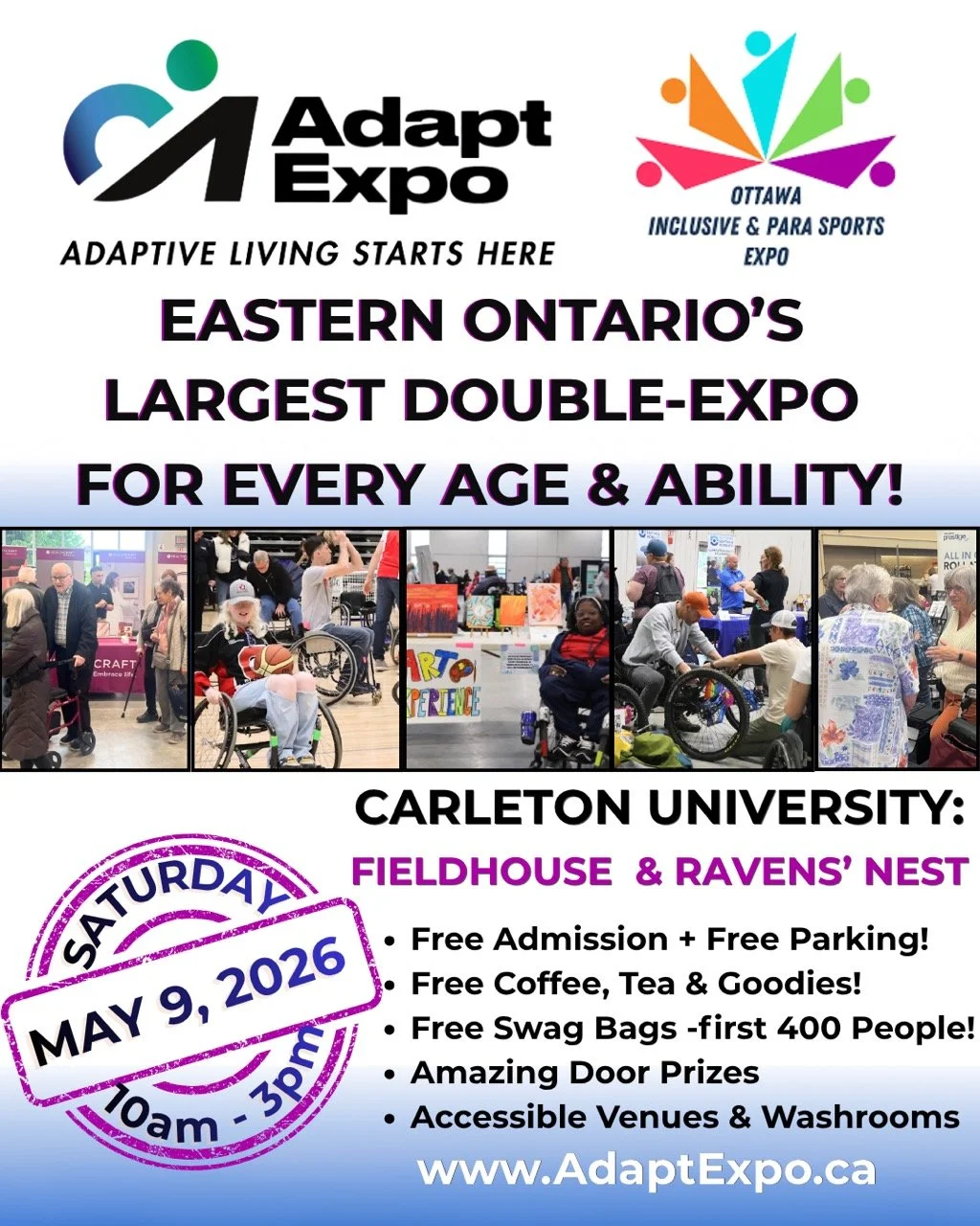 Adapt Expo - Ottawa and Ottawa Inclusive and Para Sports Expo are taking place at Carleton University (Official) on May 9 from 10 am to 3 pm, bringing together opportunities to try adaptive sports, connect with local organizations, and explore supports for people of all ages and abilities.